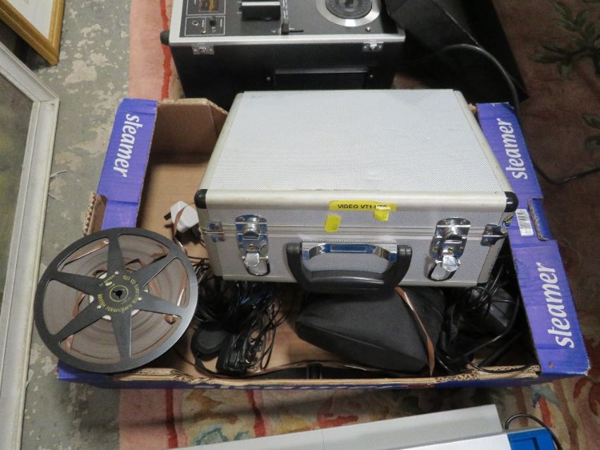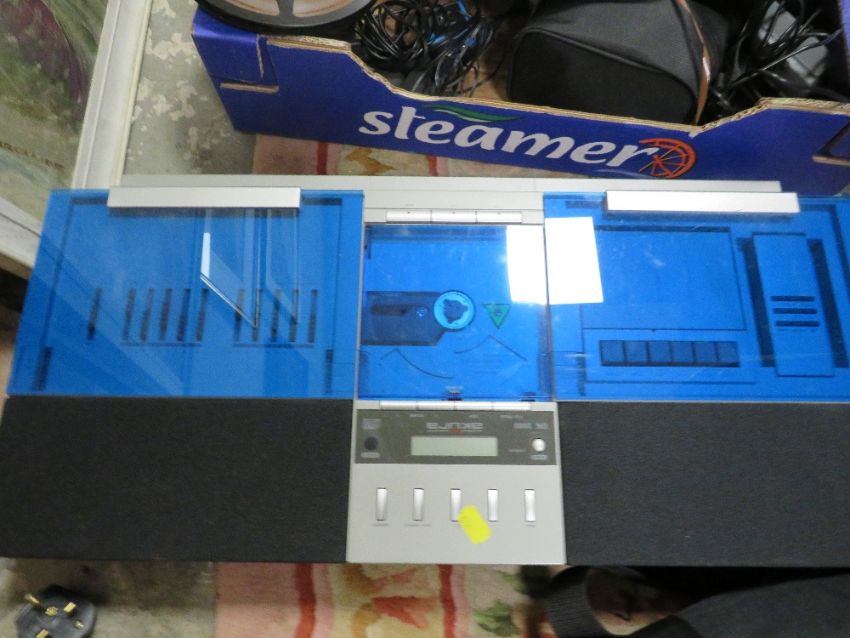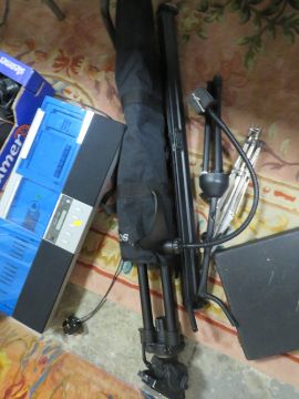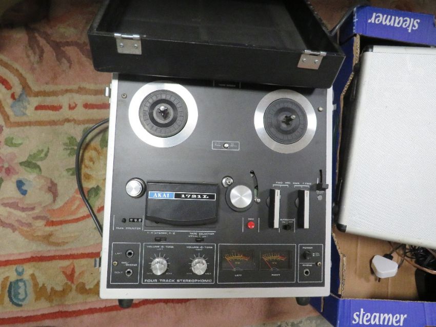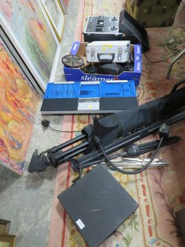 A QUANTITY OF COLLECTABLE'S TO INCLUDE A REEL TO REEL PLAYER, VIDEO CAMERA, CD DECK, MUSIC STANDS ETC