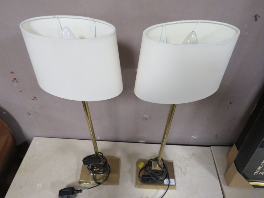 A PAIR OF MODERN TABLE LAMPS WITH SHADES