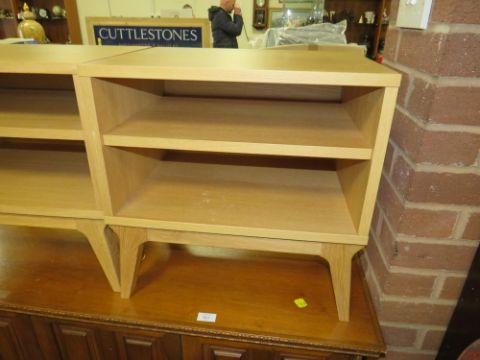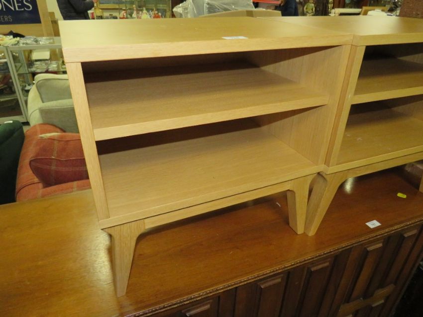A PAIR OF MODERN OAK OPEN BEDSIDE CUPBOARDS
