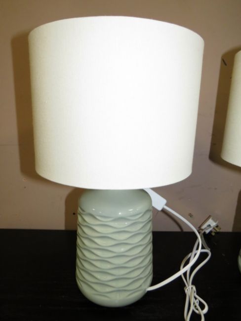 A PAIR OF MODERN TABLE LAMPS AND SHADES