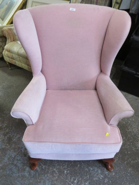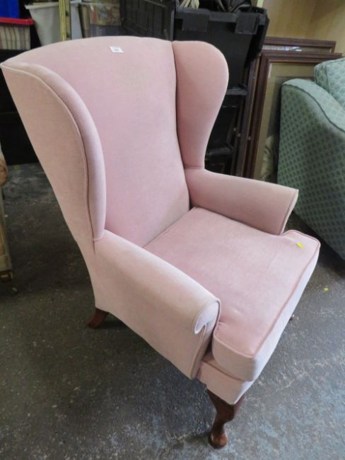 A QUEEN ANNE STYLE WINGED BACK CHAIR
