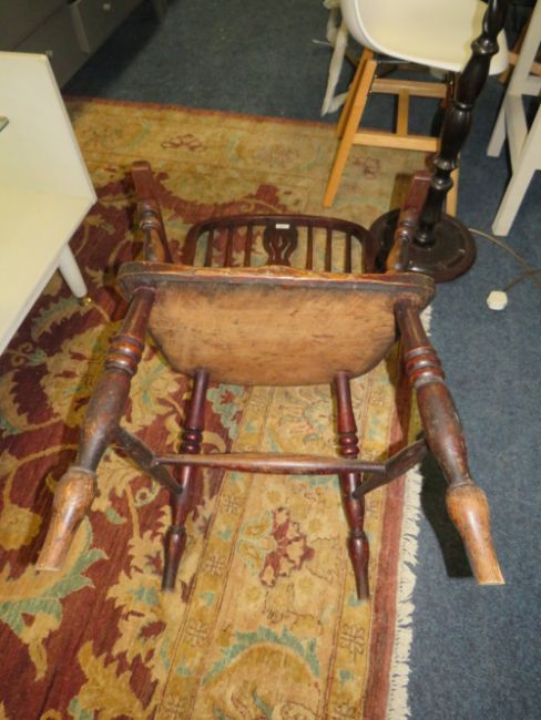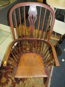 AN ANTIQUE WINDSOR HOOPBACK CHAIR TOGETHER WITH A STANDARD LAMP (2)