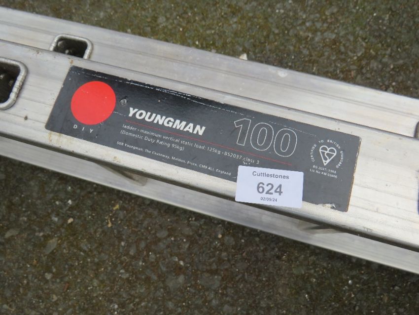 AN ALUMINIUM EXTENDING YOUNGMAN 3.37 M DOUBLE LADDER