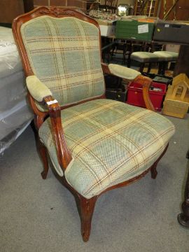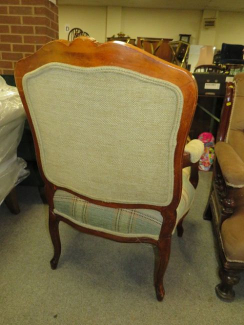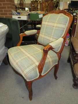 A FRENCH STYLE UPHOLSTERED ARMCHAIR