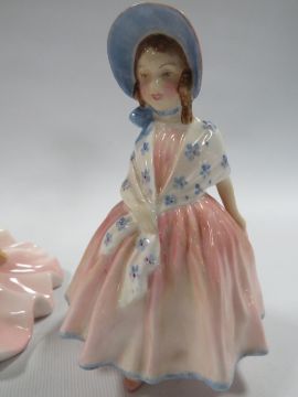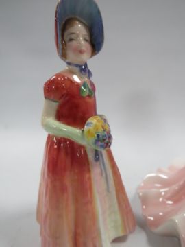 TWO SMALL ROYAL DOULTON FIGURES TOGETHER WITH A COALPORT FIGURE