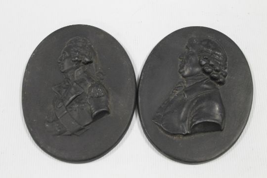 TWO WEDGWOOD BASALT STYLE PLAQUES OF JOSIAH WEDGWOOD AND NELSON