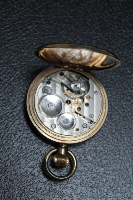 A GOLD PLATED FULL HUNTER POCKET WATCH, Dia 5 cm