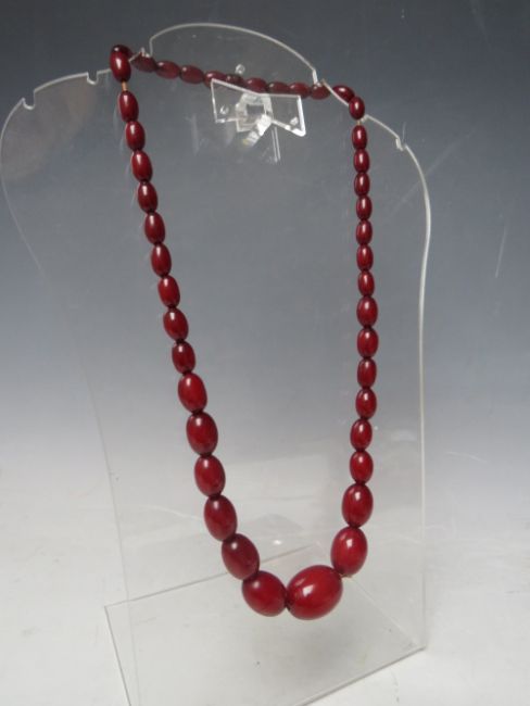 A CHERRY RED FATURAN AMBER GRADUATED OVAL BEAD NECKLACE, approx L 59 cm, approx weight 40 g
