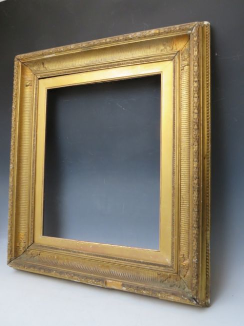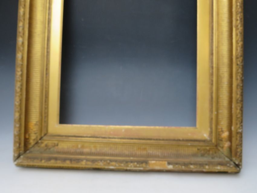 A 19TH CENTURY GOLD FRAME, with gold slip and acanthus leaf design to outer edge, frame W 9.5 cm, slip rebate 51 x 41 cm, frame rebate 57 x 47 cm