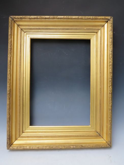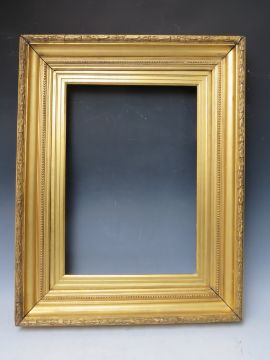 A 19TH CENTURY GOLD FRAME, with acanthus leaf design to outer edge and gold slip, frame W 8 cm, slip rebate 57 x 36 cm, frame rebate 57 x 42 cm