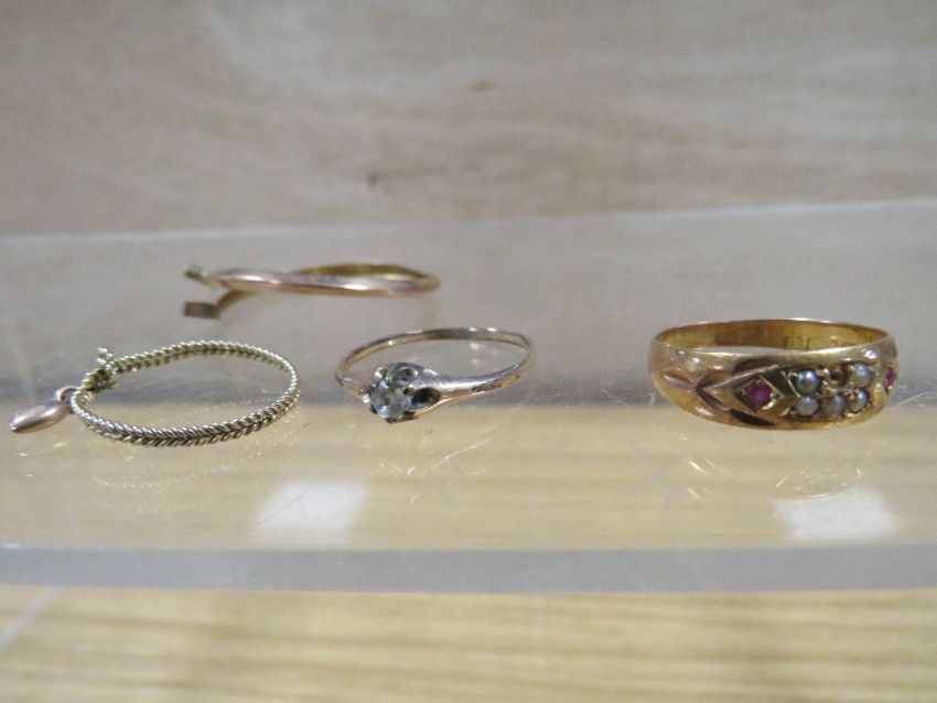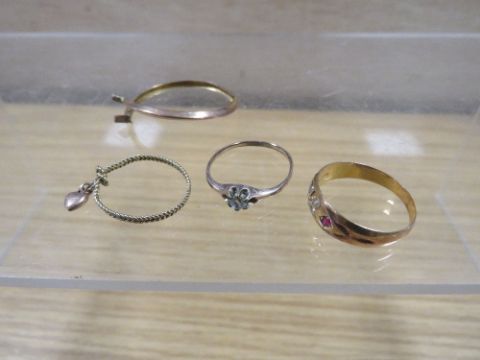 A HALLMARKED 15 CARAT HALLMARKED RING A/F approx weight 2.1g TOGETHER WITH THREE PIECES OF UNMARKED YELLOW METAL