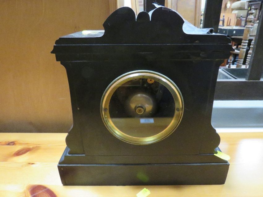 A VINTAGE SLATE MAUSOLEUM MANTEL CLOCK