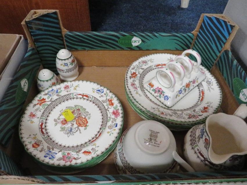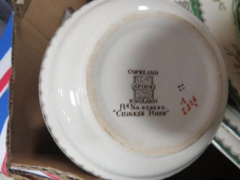 TWO TRAYS OF ASSORTED COPELAND SPODE TEA/DINNER WARE CHINESE ROSE