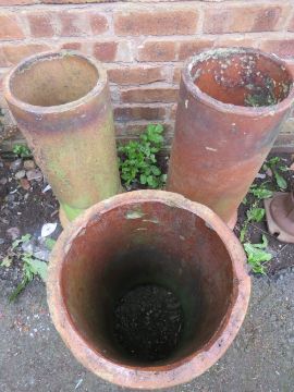 THREE TERRACOTTA CHIMNEY POT PLANTERS