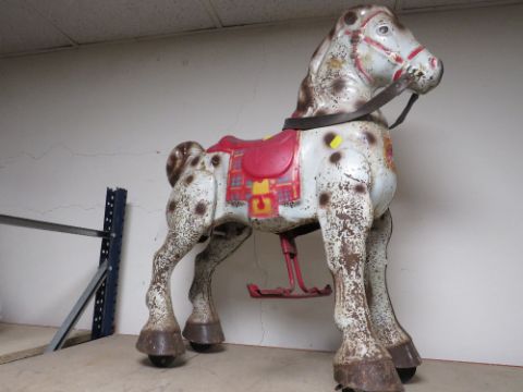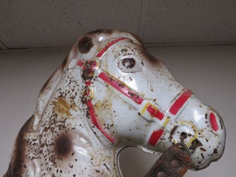 A TRIANG STYLE PUSH ALONG TOY TIN PLATE HORSE A/F