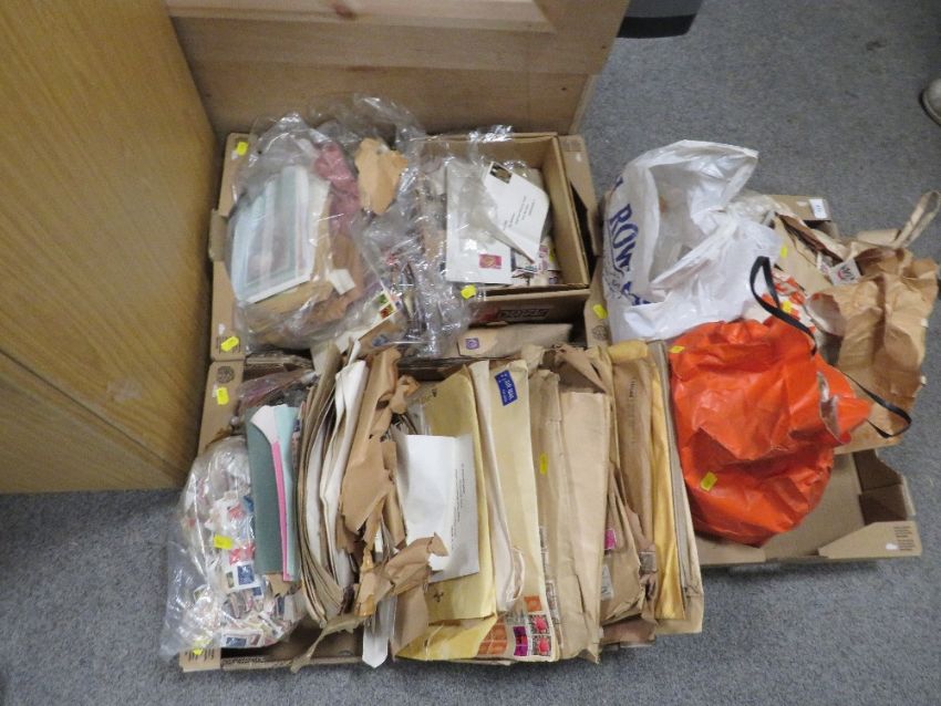 THREE TRAYS OF LOOSE STAMPS MAINLY BRITISH, FIRST DAY COVERS ETC