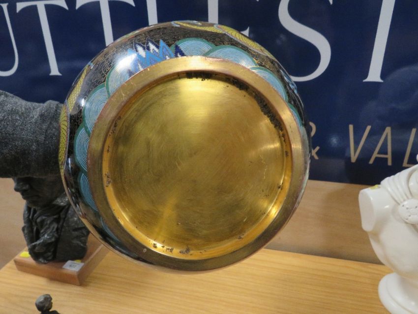 A CLOISONNE VASE OF A CHINESE STYLE FIVE TOED DRAGON