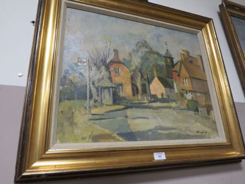 EDWARD WESSON (1910-1983). A rural village scene, signed lower right, oil on board, framed, 46 x 57 cm