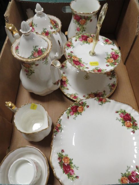TWO TRAYS OF ROYAL ALBERT OLD COUNTRY ROSES TEA/DINNER WARE