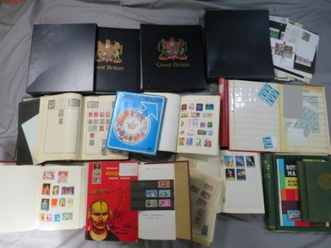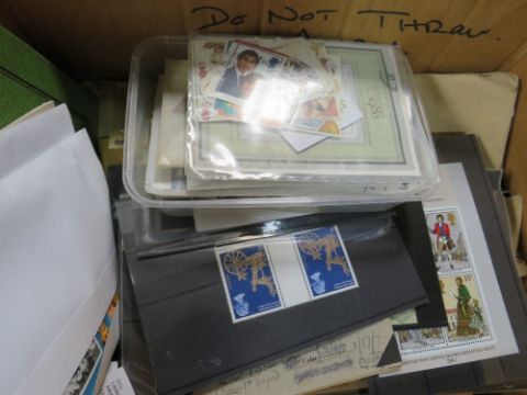 EIGHT ALBUMS OF BRITISH, COMMONWEALTTH AND WORLD STAMPS, several empty albums together with a large box of first day covers, loose stamps and sheets of stamps