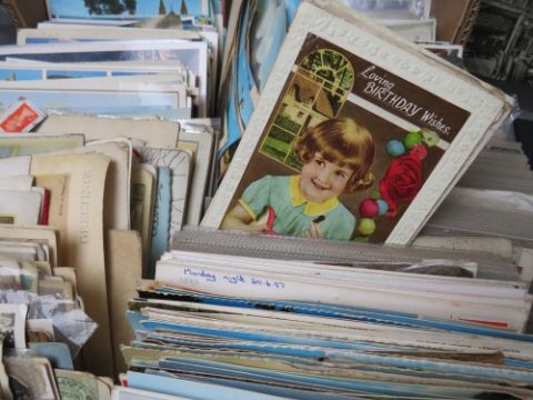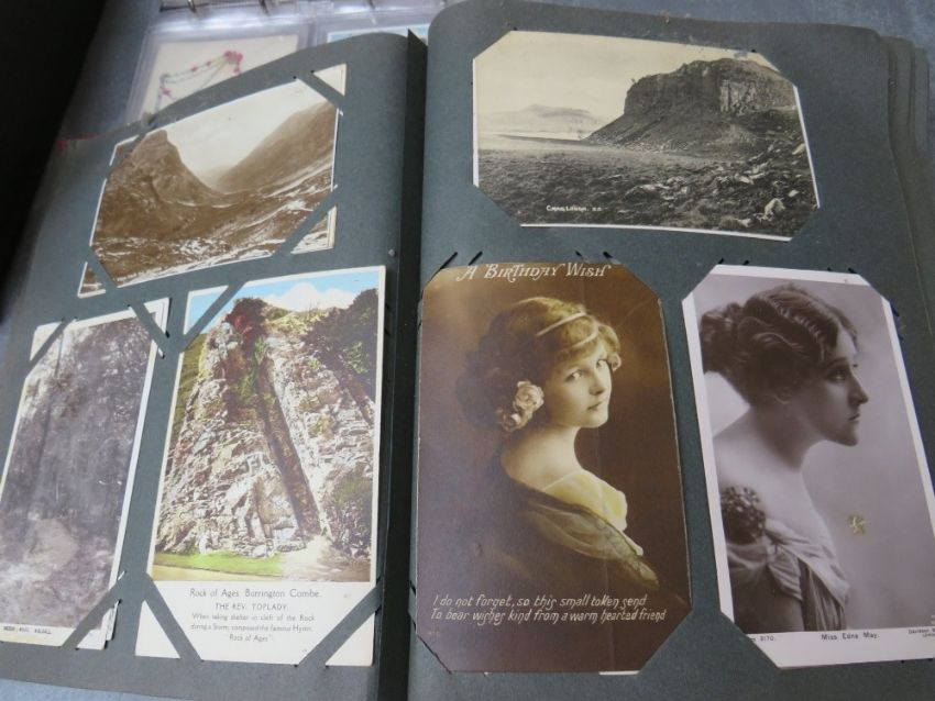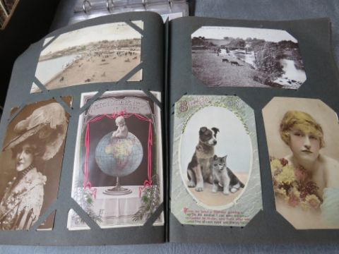 TWO VINTAGE POSTCARDS ALBUMS, together with a tray of loose postcards with many vintage examples