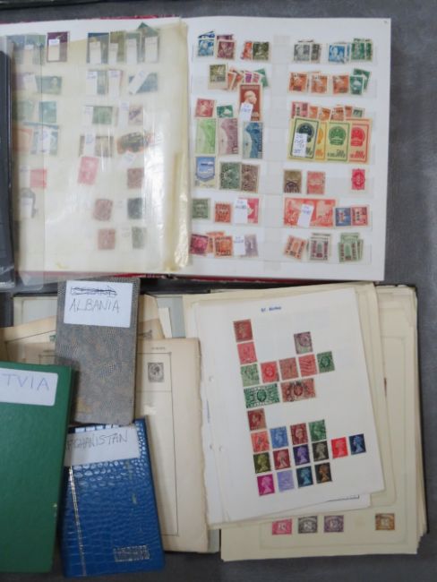 THIRTEEN LARGE STAMP ALBUMS / STOCKBOOKS, containing East German, Chinese, Egyptian, Latvian and British stamps etc., together with five small stockbooks with stamps from Poland, Albania, France and Bohemia