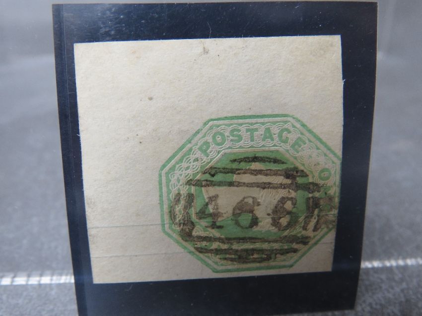 QV FINE USED 1/D GREEN, embossed die ll, two very large margins, Liverpool '466' cancel