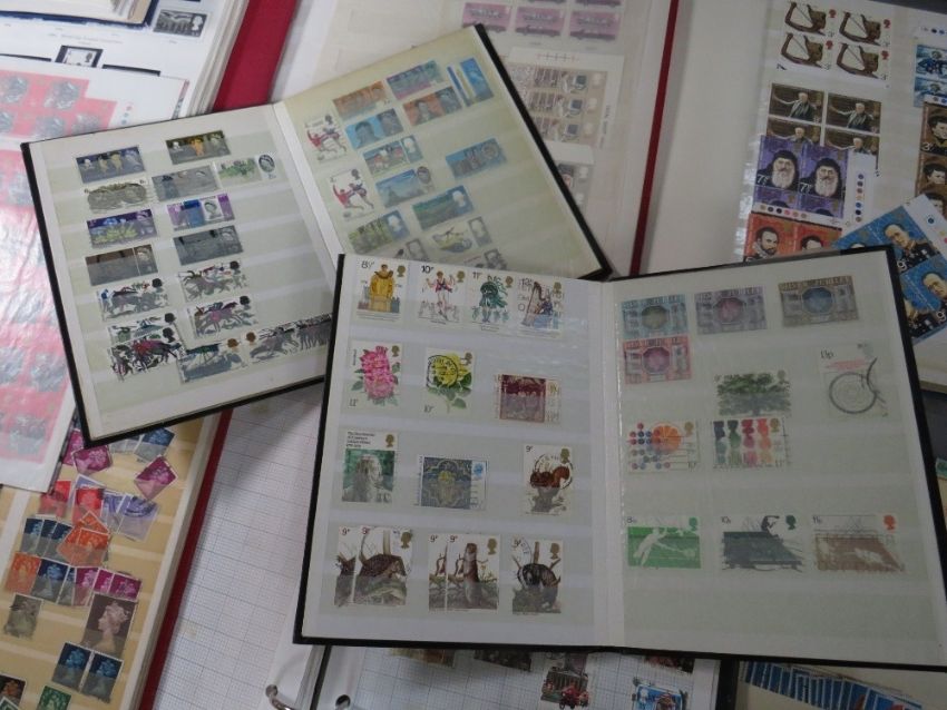 TWENTY BRITISH STAMP ALBUMS / STOCK BOOKS, to include many QEII blocks
