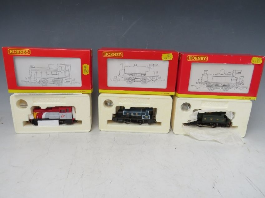 THREE BOXED HORNBY 00 GAUGE SCALE LOCOMOTIVES / SHUNTERS, to include industrial locomotive 101, 0-4-0T, R2304, industrial locomotive 0-4-0ST, R2361 and class 06 mechanical shunter, Virgin 0-4-0 diesels, R2375