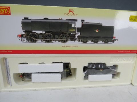 A PAIR OF BOXED HORNBY 00 GAUGE STEAM LOCOMOTIVES WITH TENDERS, to include Class Q1 locomotive, C8, SR 0-6-0, R2343 and class Q1 locomotive, 33009, BR 0-6-0, R2344 weathered edition