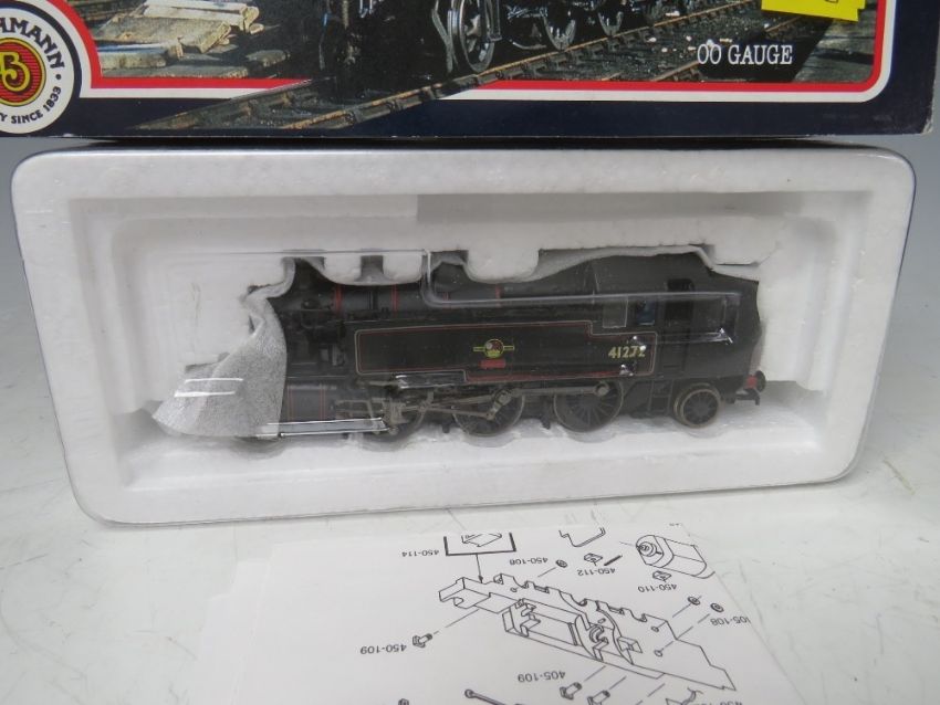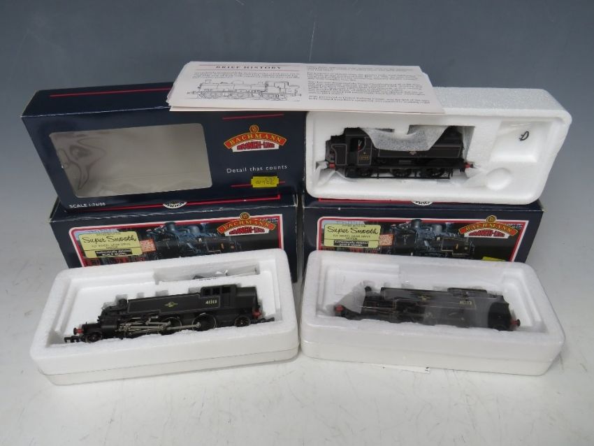 THREE BOXED BACHMANN 00 GAUGE SCALE TANKS, to include 32201 Pannier tank 8763 BR black, 31452 Ivatt 41313, 2-6-2 BR lined black, 31450A Ivatt 41272 BR lined black early emblem push / pull