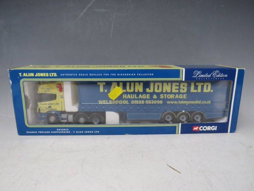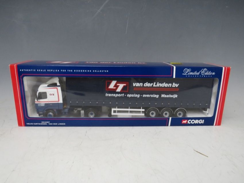 FOUR BOXED CORGI 1:50 SCALE ARTICULATED LORRIES AND TRAILERS, to include /Gallagher Brothers MAN 75803, Van Der Linden BV Volvo CC12407, Alun Jones Scania CC12913 and David Murray DAF CC13229