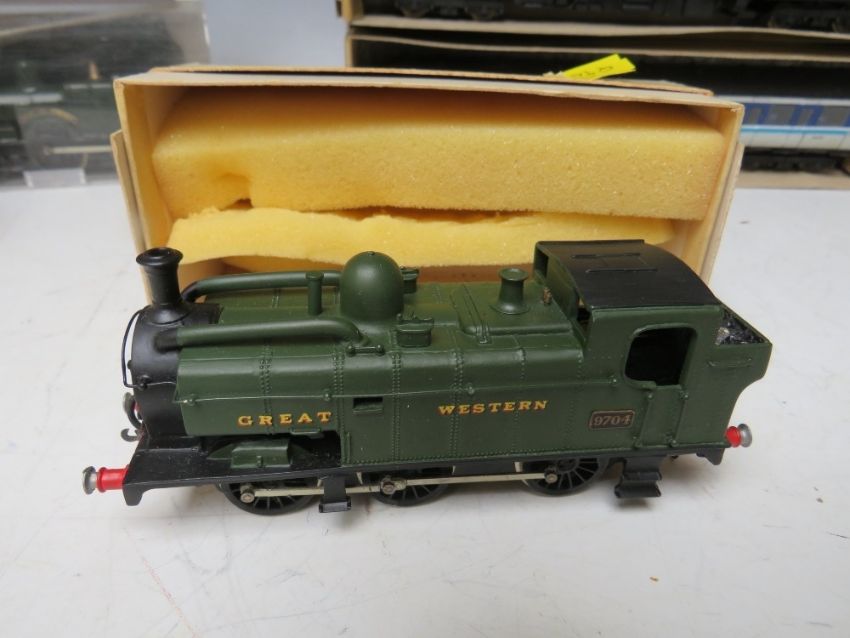 SIX 00 GAUGE SCALE LOCOMOTIVES / TANKS. to include Lima diesel Regional Railways 55003, Lima diesel BR 55029, Hornby steam loco with tender 2538 0-6-0, Mainline tank 2116 GWR 0-6-0 green, GWR 9704 0-6-0 green and Isle of Jersey steam locomotive with tender 3284 GWR 4-4-0