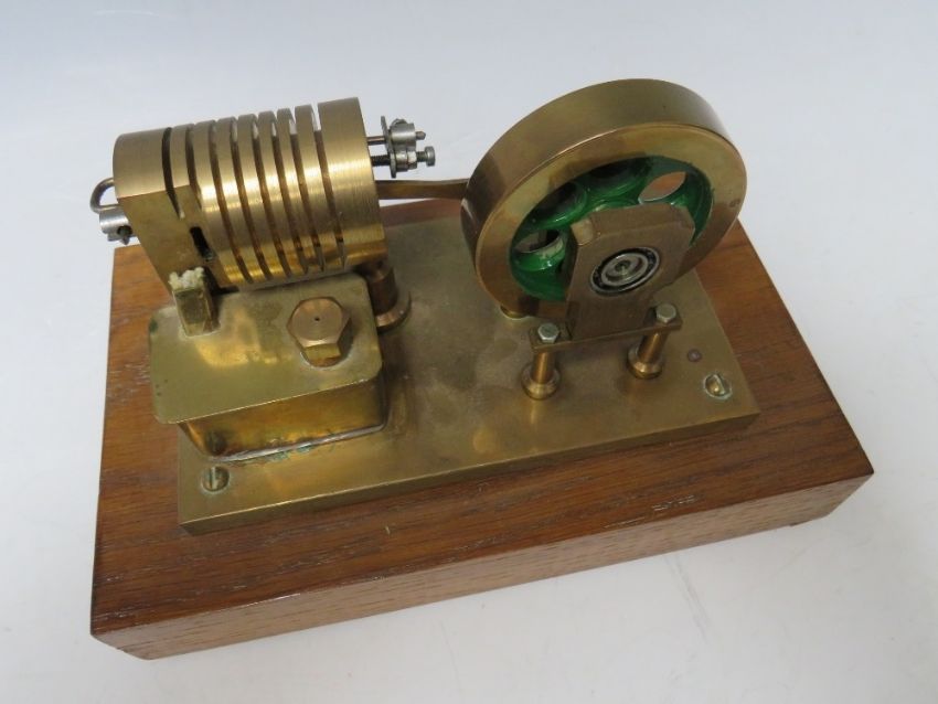 A FLAME / VACUUM ENGINE ON WOODEN PLINTH, with build plans
