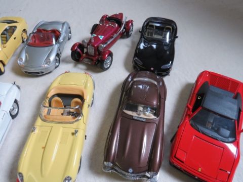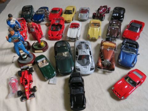 A COLLECTION OF UNBOXED DIE CAST CARS AND FIGURES, cars mainly 1:18 scale by Burago, Maisto etc., figures by 'The Art of Sport'