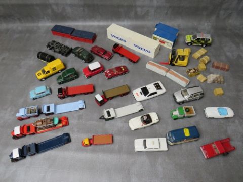 A TRAY OF UNBOXED DIE CAST, to include mainly Corgi examples, together with some lorry trailer backs and loads