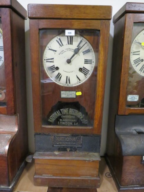 A NATIONAL TIME RECORDER OAK CASED CLOCKING IN CLOCK, H 84 cm