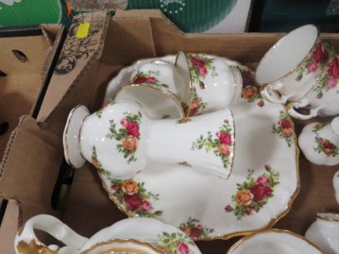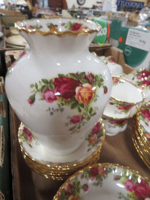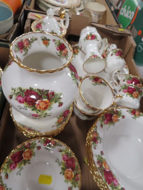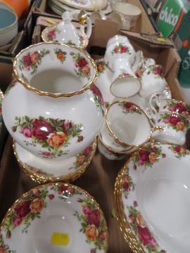 TWO TRAYS OF ROYAL ALBERT OLD COUNTRY ROSES TEA/DINNER WARE