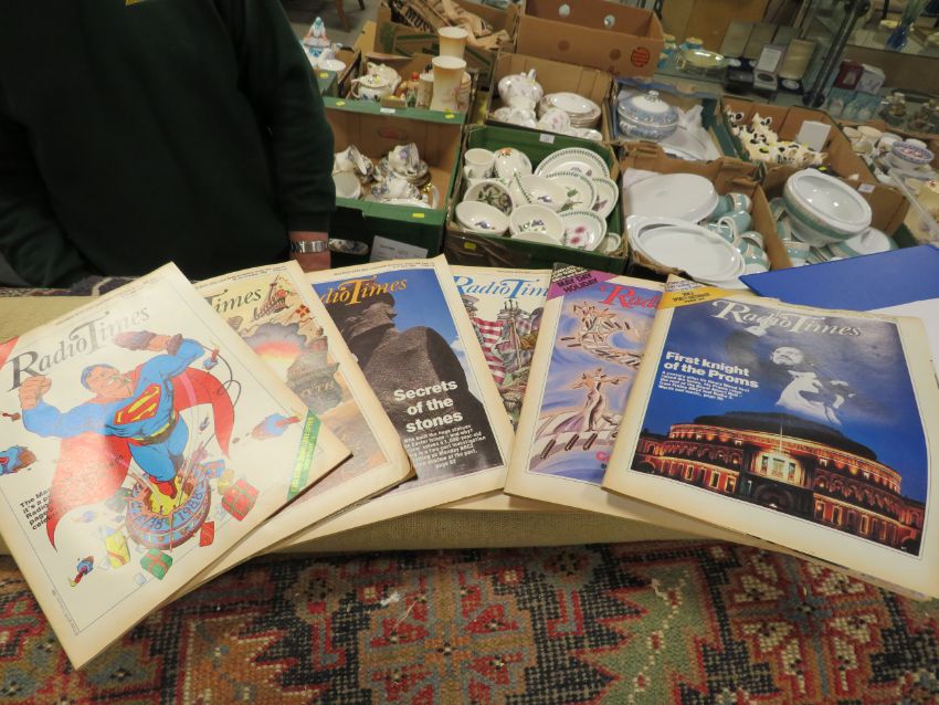 A LARGE TRAY OF VINTAGE TV TIMES MAGAZINES ETC - MOSTLY 1980'S