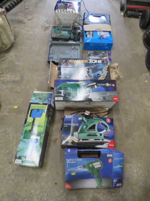 A QUANTITY OF BOXED ELECTRIC TOOLS TO INCLUDE A CIRCULAR SWA, SANDER ETC