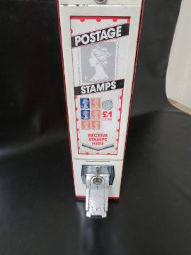 A VINTAGE METAL POSTAGE STAMPS VENDING MACHINE