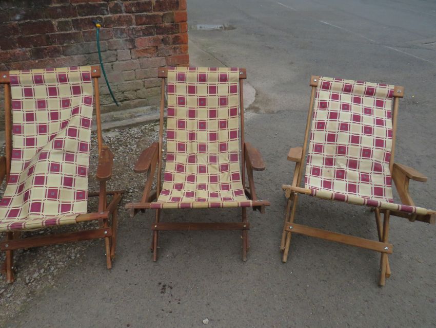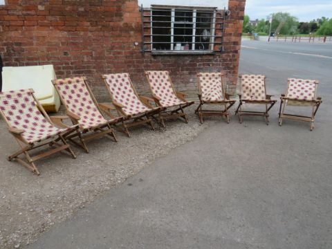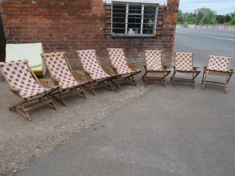 SEVEN HARDWOOD GARDEN FOLDING DECK CHAIRS
