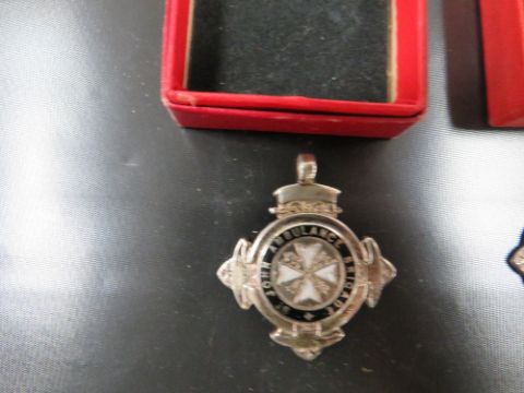TWO HALLMARKED SILVER AND ENAMEL ST. JOHN AMBULANCE WATCH CHAIN FOBS