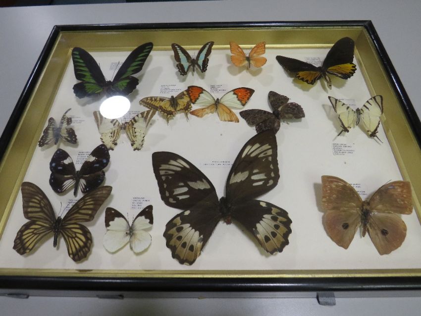 A FRAMED AND GLAZED TAXIDERMY BUTTERFLY DISPLAY