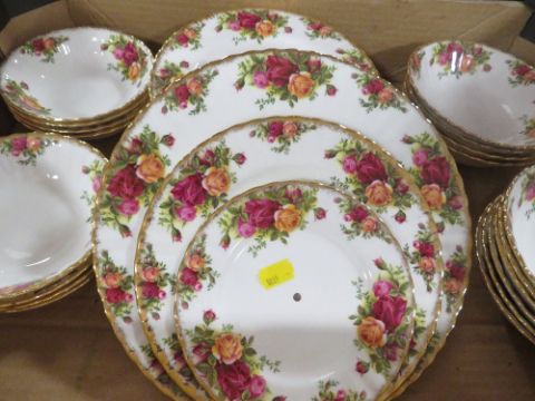 TWO TRAYS OF OLD ROYAL ALBERT COUNTRY ROSES TEA/DINNER WARE