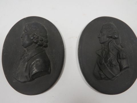 WEDGWOOD STYLE BASALT PLAQUES OF NELSON AND JOSIAH WEDGWOOD