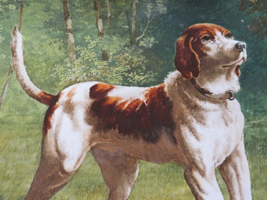 A LARGE CERAMIC CHARGER DECORATED WITH A DOG