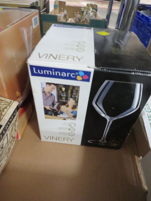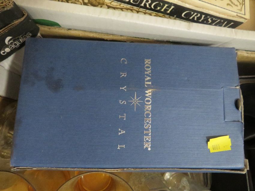 TWO TRAYS OF GLASSWARE TO INCLUDE EDINBURGH CRYSTAL, BOXED EXAMPLES ETC