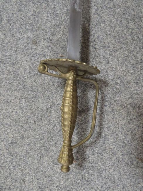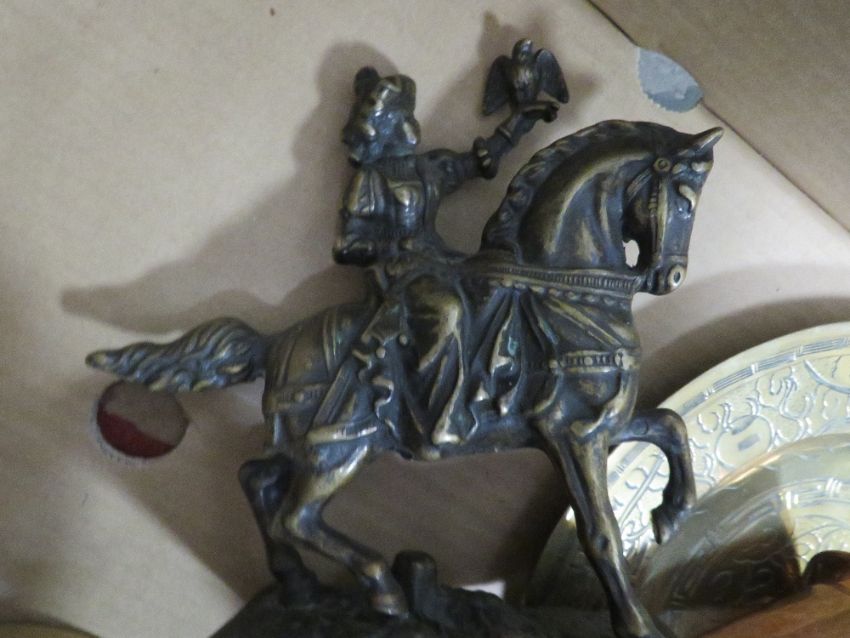 A BOX OF BRASS / BRONZE TO INCLUDE A SWORD