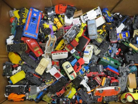A TRAY OF PLAYWORN DIE CAST VEHICLES TO INCLUDE HOT WHEELS, CORGI, MATCHBOX ETC